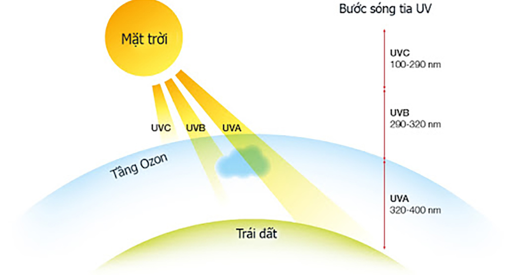 Tia UV là bức xạ điện từ từ ánh nắng mặt trời, không nhìn thấy bằng mắt thường. Tia UV được chia thành 3 loại: